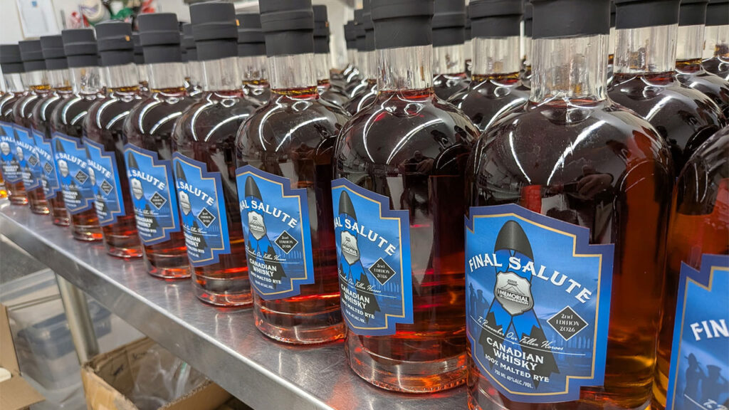 The Police and Peace Officers’ Memorial Ribbon, in partnership with Tumbleweeds Spirits Distillery is proud to release the 2nd edition of their Final Salute Whisky. The 2026 release is a malted rye whisky desert-aged 3 years in the heat of Osoyoos, BC. It is a smooth rye whisky in a clear bottle.
